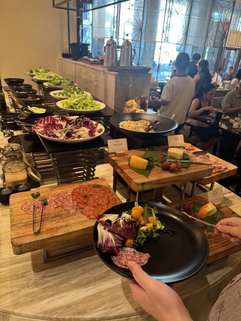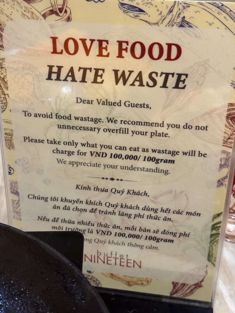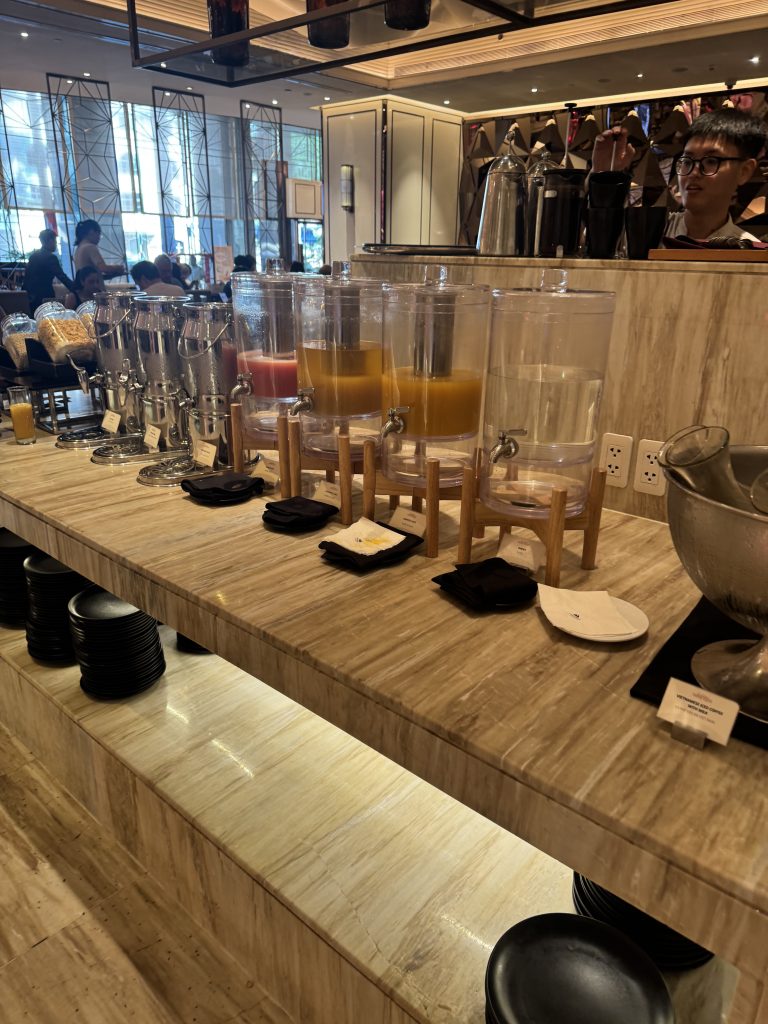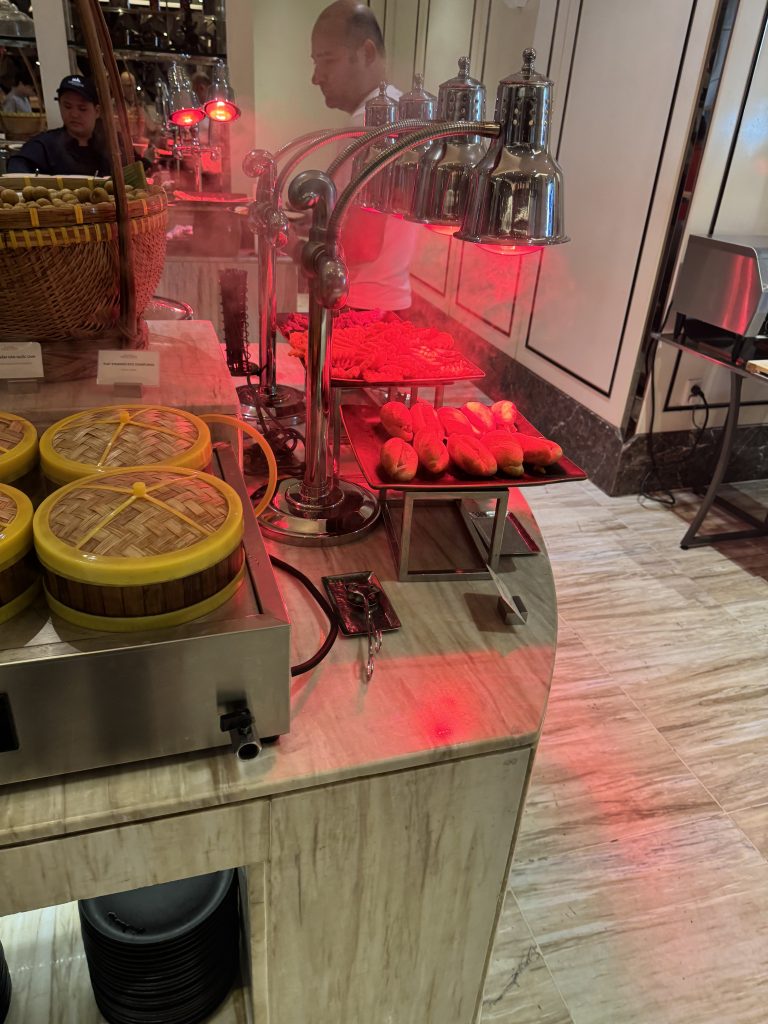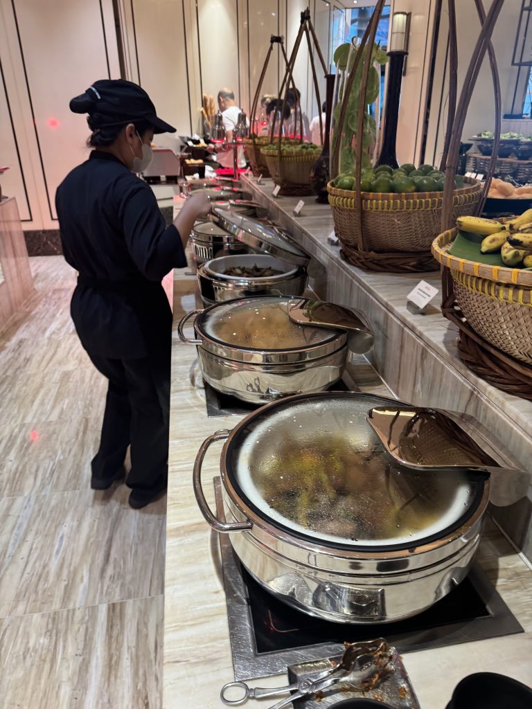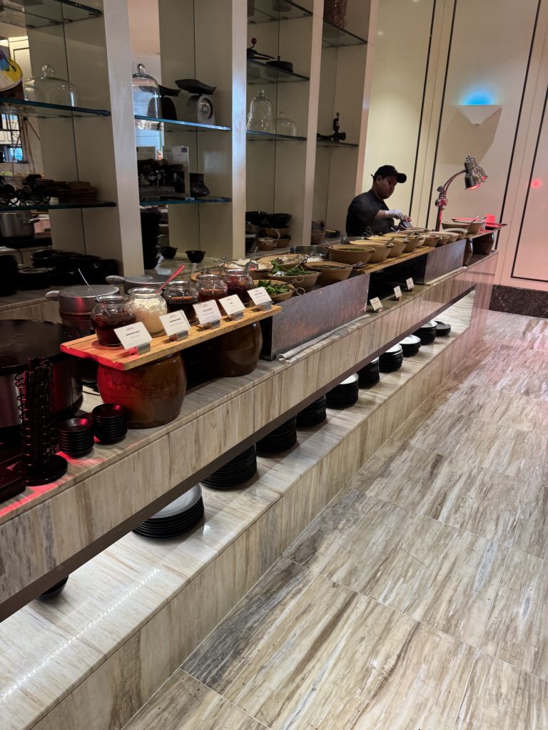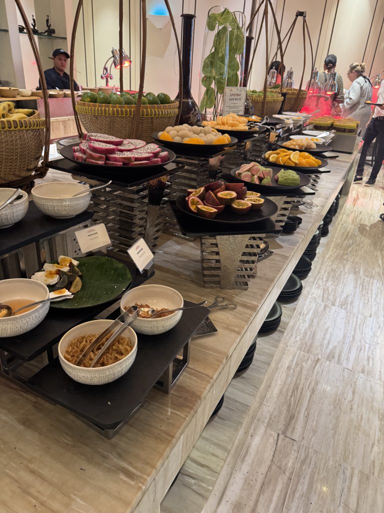 My faith in the Southeast Asian breakfast has been restored! This was actually a smaller buffet than at the Royal Hotel Saigon, but considerably better. The one drawback I might mention was that the tea was, of course, bags only. But otherwise: the bread was very good, the croissants were excellent. A nice spread of cold and warm dishes, both local as well as regional (Japanese and Korean, including some very nice Korean dumplings) and of course Western. The bacon was amazingly crispy! A very good choice of cold cuts, cheeses and vegetables. The fresh fruit nicely presented. Overall, the quality was high. I would have rated this an 8, but the sign about not overloading your plate and being charged if you leave a lot of food, raises this to 8.5/10.