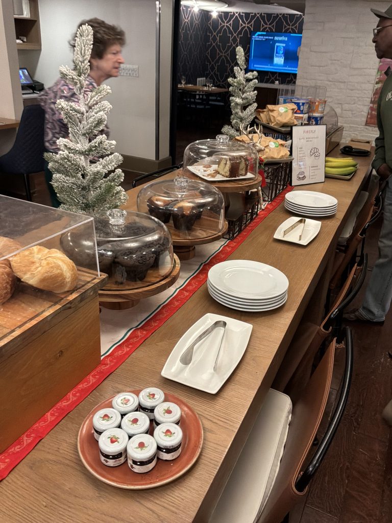 This seems to be the trip where I return to old reviews. I wrote about the Madera almost three years ago, giving it 7/10; but when we checked in this time, we were told that they have substantially changed the breakfast, necessitating a new review. So, here goes: The change was to make the breakfast ‘continental’, which means fewer cooked dishes and more bread and pastry. This means a bar with a few things, including some extremely low quality croissants (I didn’t even taste them, looking was enough to turn me off!); some distinctly dry and unappetising sandwiches ‘(I did unfortunately take one); some reasonable fruit and yoghurt mix, all right muffins and some fresh fruit (I tried a banana, it was inedible). Every item individually priced. We are staying in the hotel four nights, but are not returning to the breakfast which I will award 1/10.