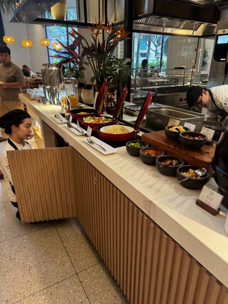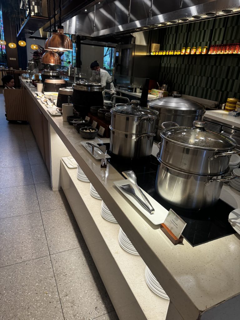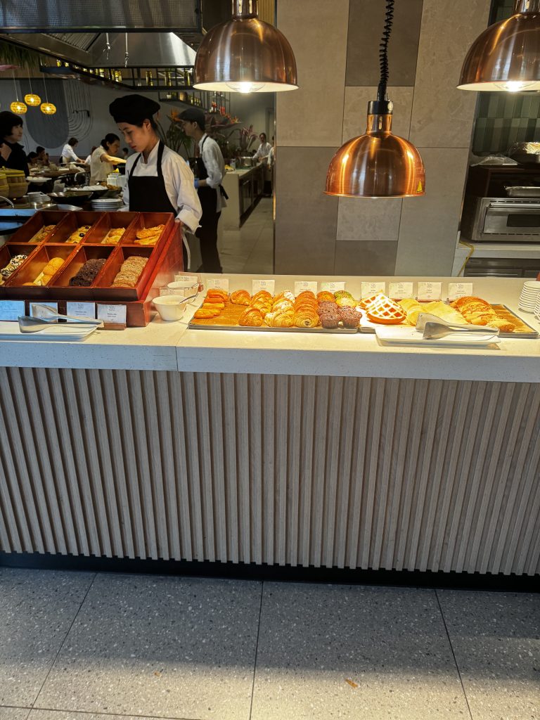 I often say that, when it comes to breakfast buffets, size does not really matter. This is usually to rate a small buffet highly. In this case, however, it is for the opposite reason. This is a very large and very varied buffet. There is Vietnamese (of course!), Japanese, Indian, Spanish, vegetarian, Western and possibly much more. The food looks attractive. But once you start sampling, the impression changes. Most things are fine; but that’s just it. They’re fine, but nothing more. In fairness, there are some parts that do exceed. Good choice of cold cuts and fish but disappointing cheese (cheddar and emmentaler only). The fresh fruit is fine and there’s a wide choice of warm dishes from all the cuisines mentioned. But: the bread is very uninspiring in choice and even more so in taste. The croissants were possibly the worst I have ever tried and certainly the worst for what should be a high-quality establishment. The tea is bags only, but this is to be expected. So this should have been a real high-rater, but, in the end, I will settle for 6.5/10; decent, but certainly not worth a detour.