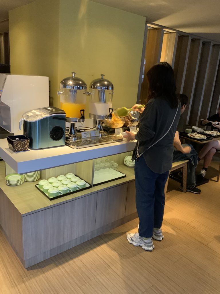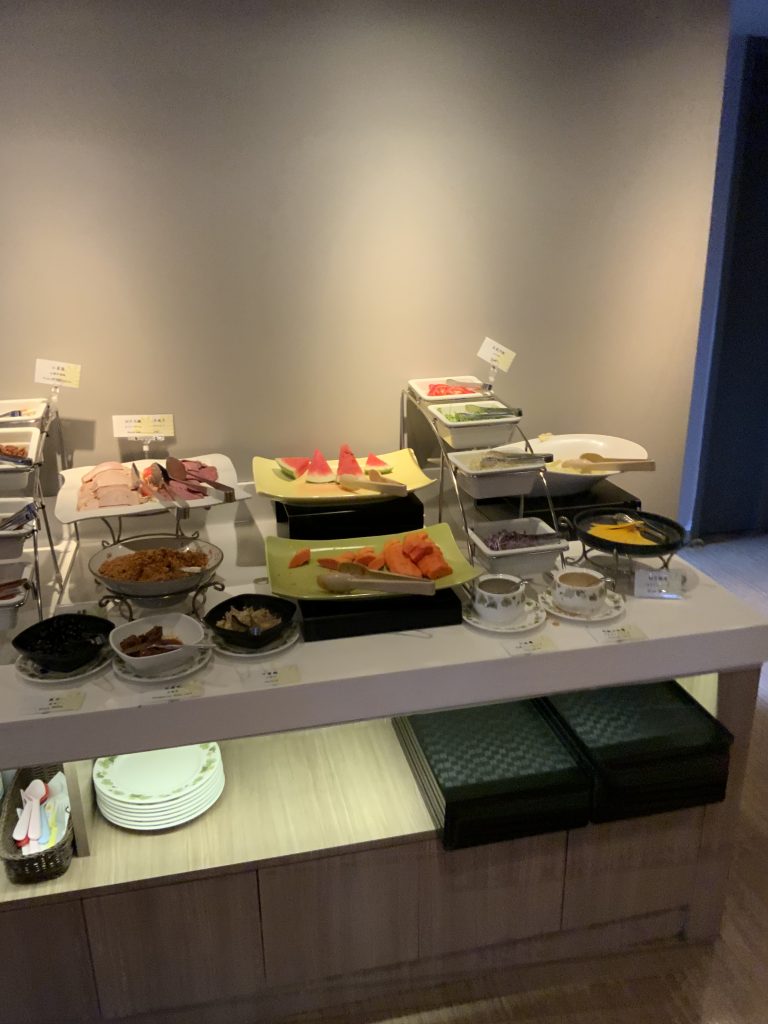 This is a very uninspiring breakfast. The tea is bags only, but at least the only kind available is oolong. There is a minimal choice of cold cuts and vegetables, with a “cheese” that could only appeal to some Americans (i.e., an indeterminate, plastic yellow slice with a faint resemblance to cheese. The bread is ‘blotting-paper’-style. The fresh fruit is limited but nothing wrong. There is a better choice of local food, and for that reason, and because of the oolong tea, I will – generously – award this 3/10. Another guest suggested 2, but that would be too harsh in my opinion.