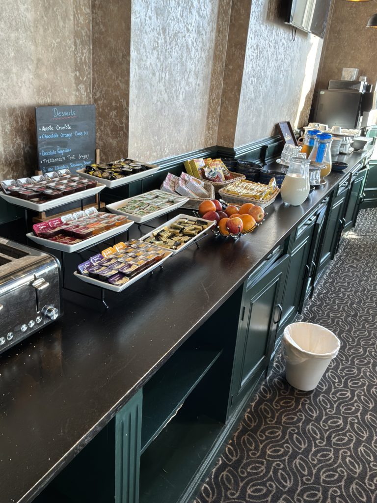A fairly limited breakfast, although there was also a menu from which you could choose cooked dishes. On the negative side, the dishwasher had not managed to clean up the cups available. More positive, the toasters were both fast and good. The food was fine, but nothing special (bag tea only, of course) and so I’d say this is perhaps worth 4/10.