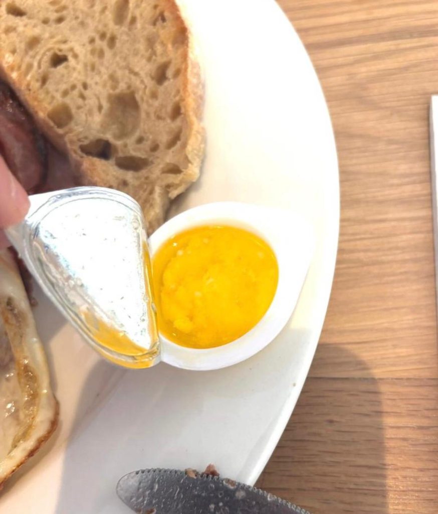 It was a decent start to the day, the Farmhouse breakfast with fried eggs over medium. Going clockwise from 12 o’clock, the bacon was nearly the pick of the bunch with nice crispy edges but sadly lacking the crunch you expect from streaky bacon. The bread was nice and toasted on the outside while remaining soft on the inside; I wish I could be as complementary of the butter which looked straight out of a pump for ‘Butter Flavored Popcorn Topping’ found at a typical American cinema. Ordered as over medium, delivered as over easy, but actually over hard, the eggs were an exercise in misdirection. The beef sausage was a bit of a curveball for breakfast but was the best thing on the plate. It was the same as the one served at the Braai the night before, but no matter, its flavour is sensational morning, noon, and night. The herbed mushrooms were flavourful and nicely cooked, nothing to write home about but mushrooms seldom are. I have described tomatoes on previous fry ups as decorative; these were not. As a benefit of being in the southern hemisphere, the tomatoes are delicious in the middle of a February summer with acidity that cut across the richness elsewhere on the plate. The americano with milk (not pictured) was well rounded and hot, living up to the high expectations of the coffee culture in South Africa’s Western Cape.